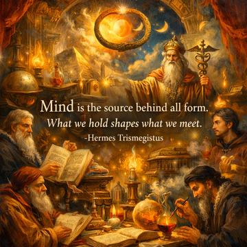 The 8th Hermetic principle explored through ancient sages, lost texts, and living insight on mind shaping reality.